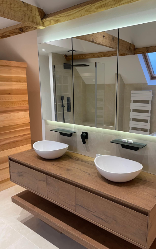 Cuisines aménagées (équipées) contemporaines et aux caractères intemporels de qualité allemande, électroménager haut de gamme, des salles de bain qui deviennent de véritables pièces complémentaires à vivre...